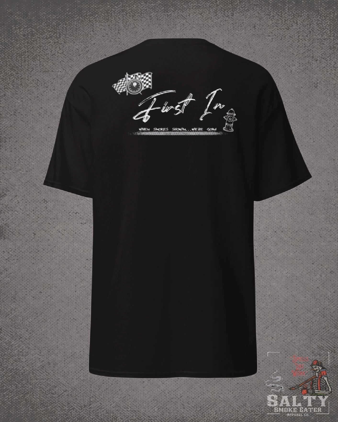 This "First In" shirt embodies the speed, determination, and bravery of firefighters, always the first to respond when the call comes in. With a sleek, race-inspired design, this shirt is perfect for firefighters who pride themselves on being the first on the scene and ready for action.